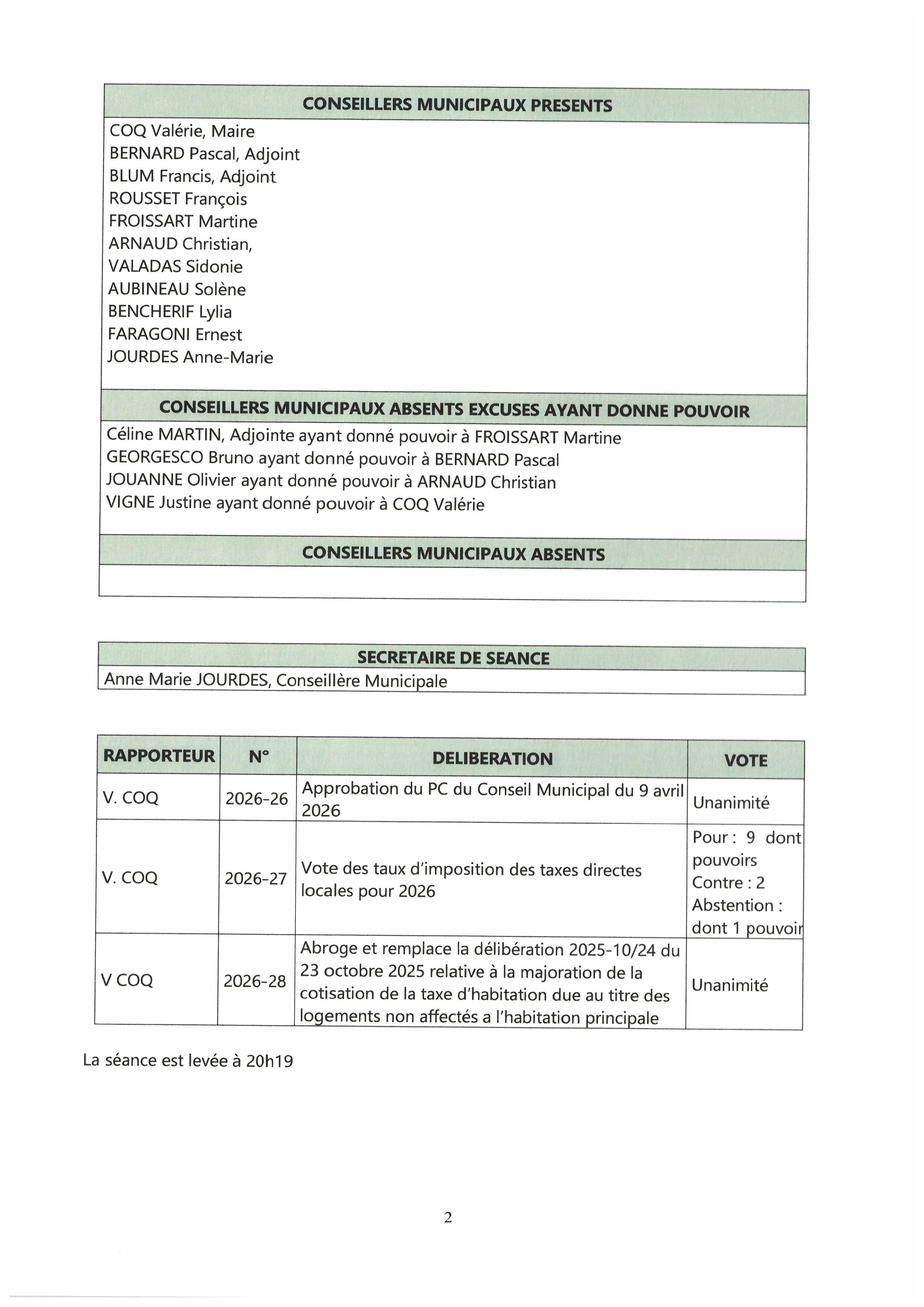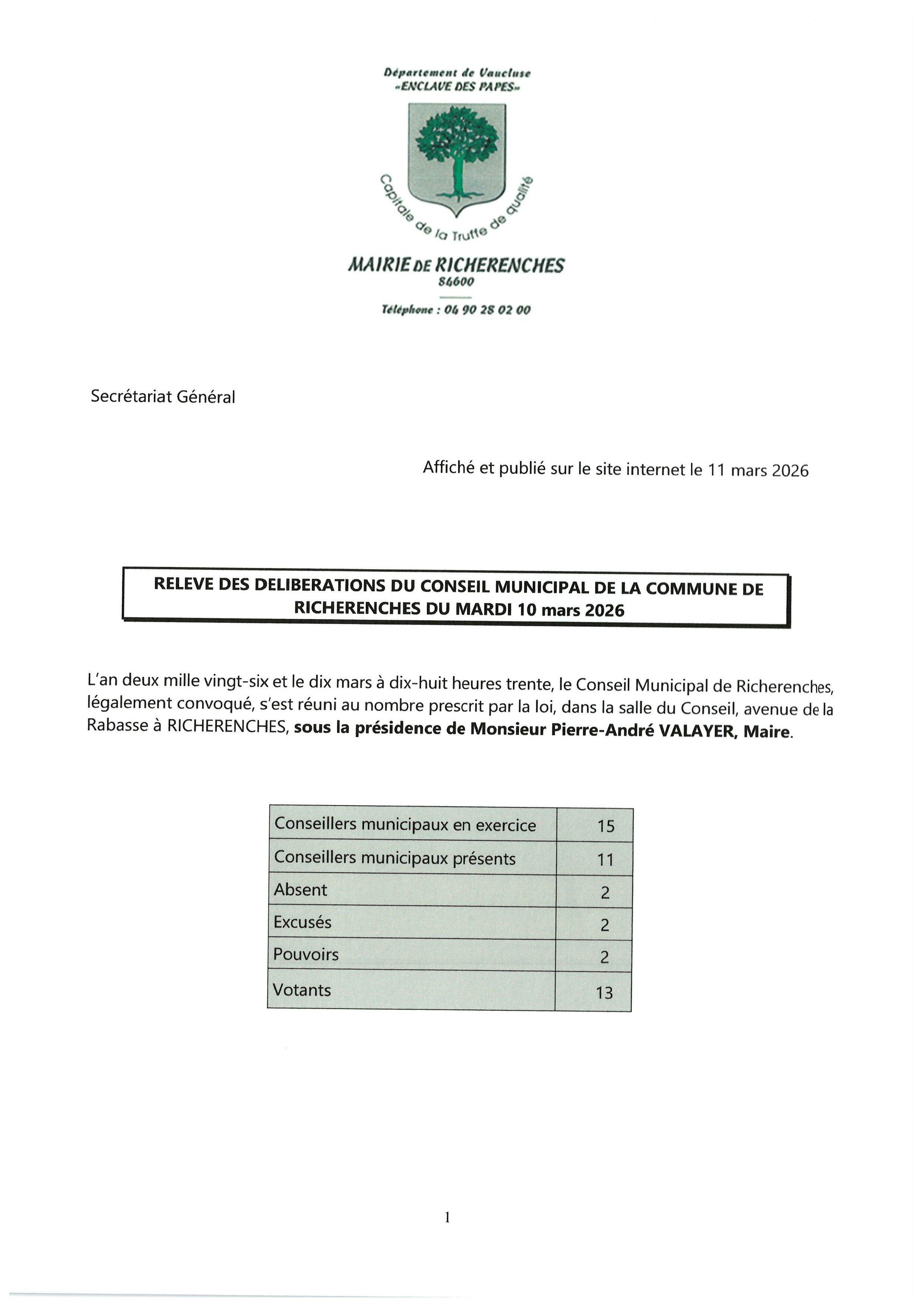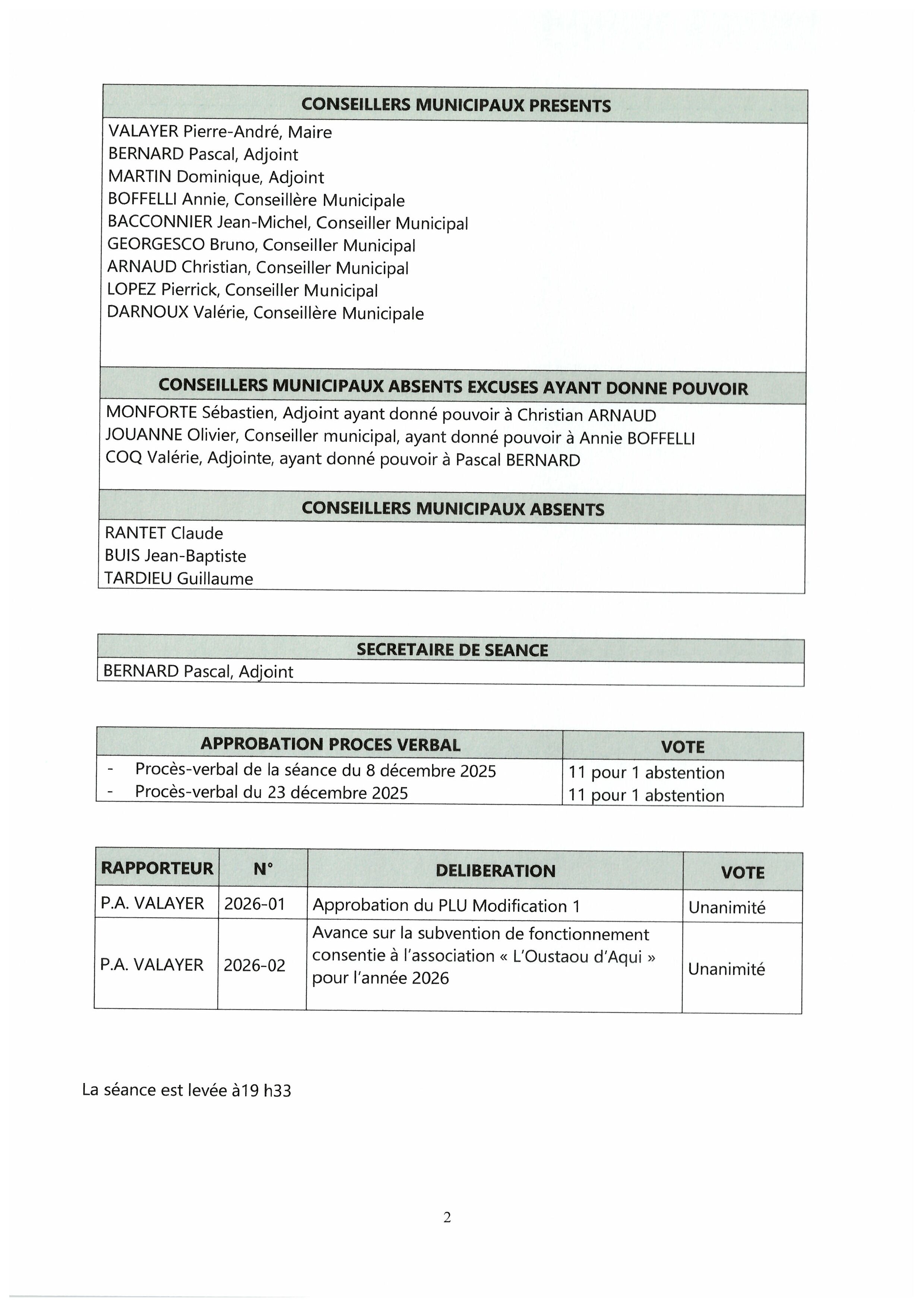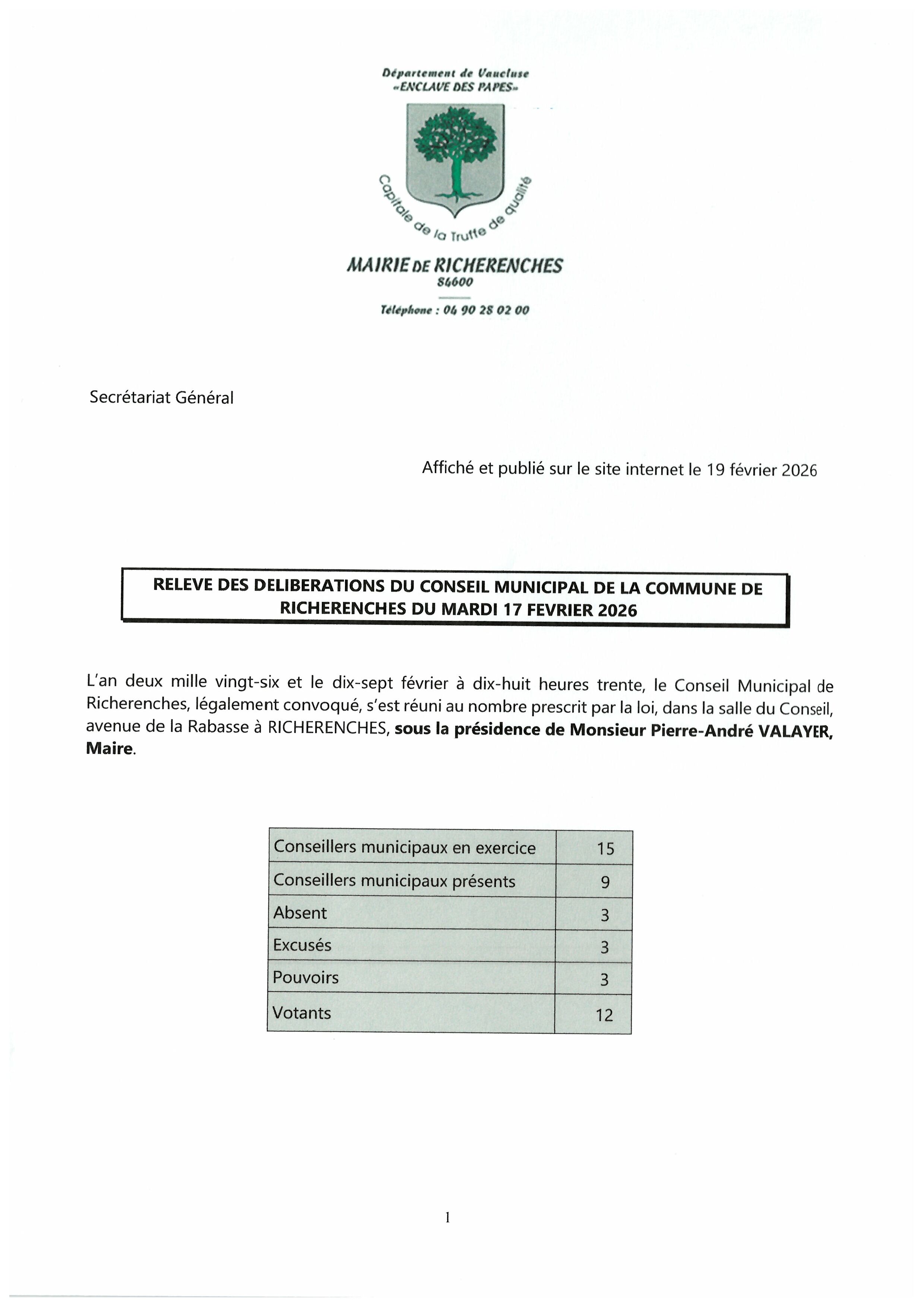 Vous êtes ici : Accueil > Conseil municipal > Relevés des délibérations