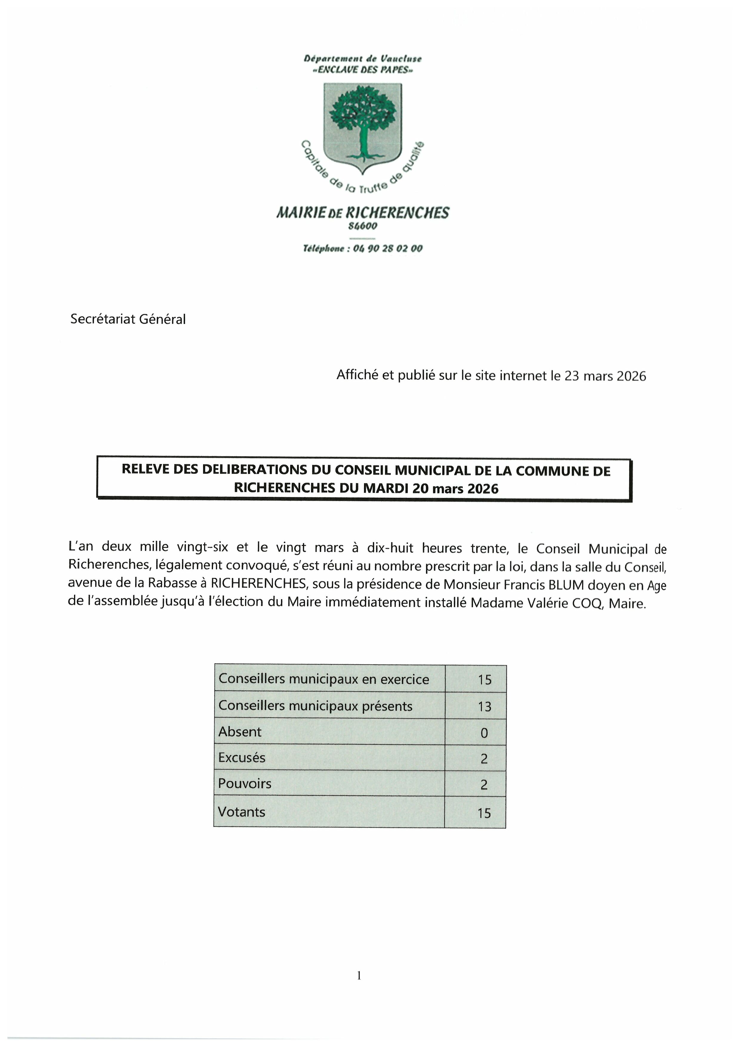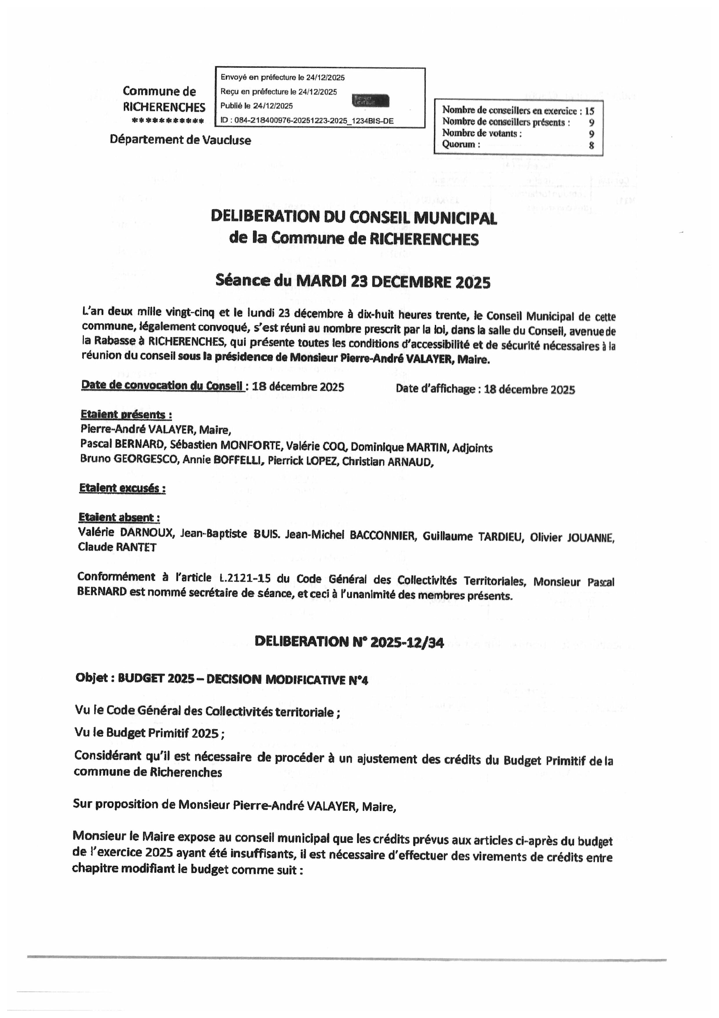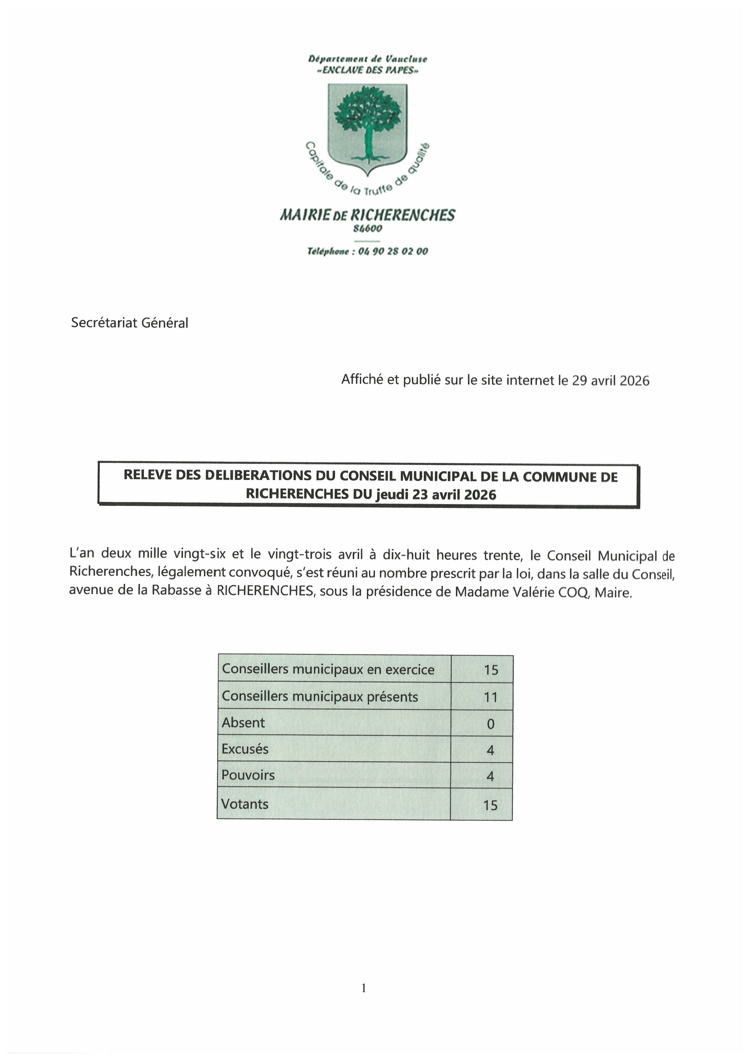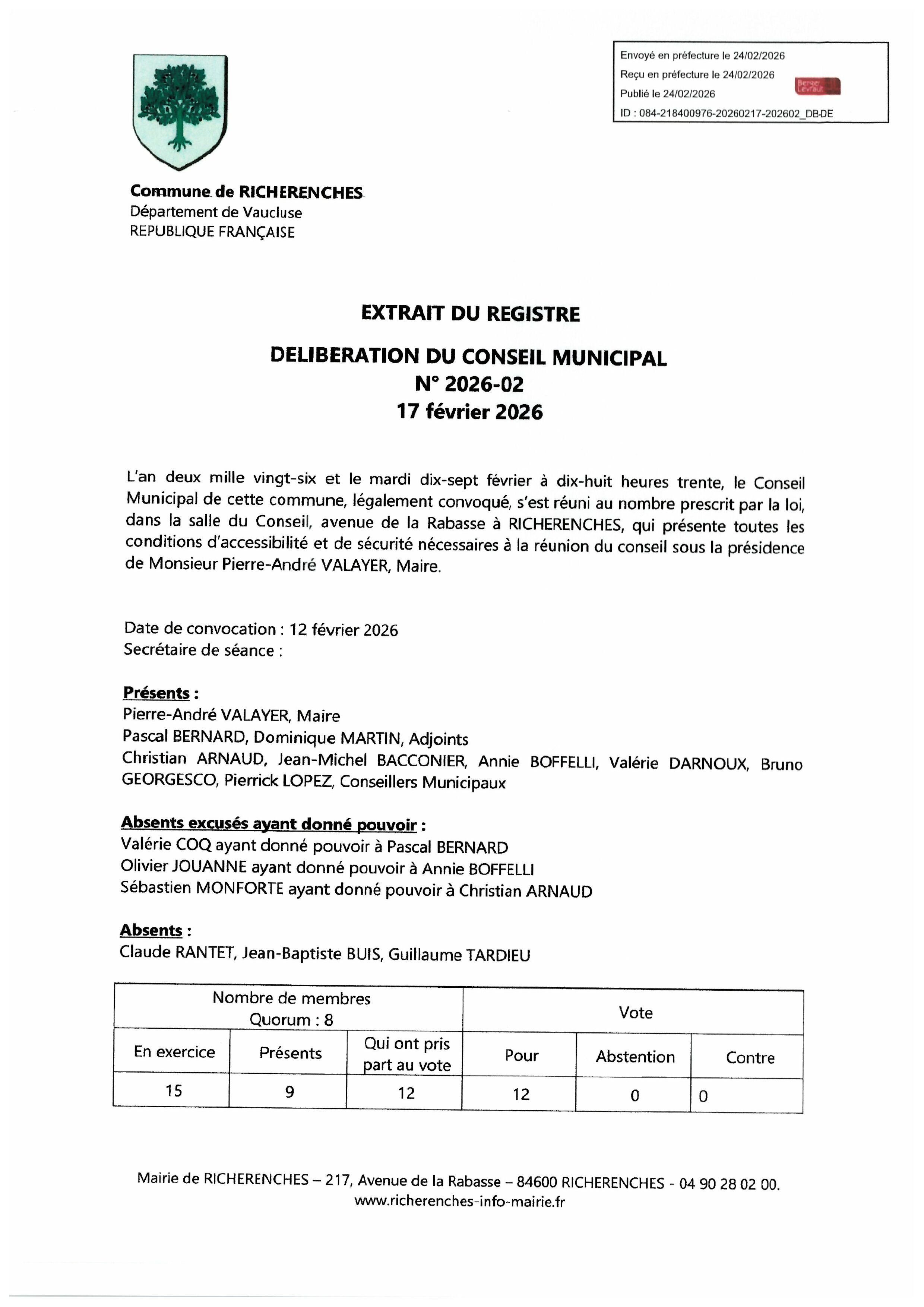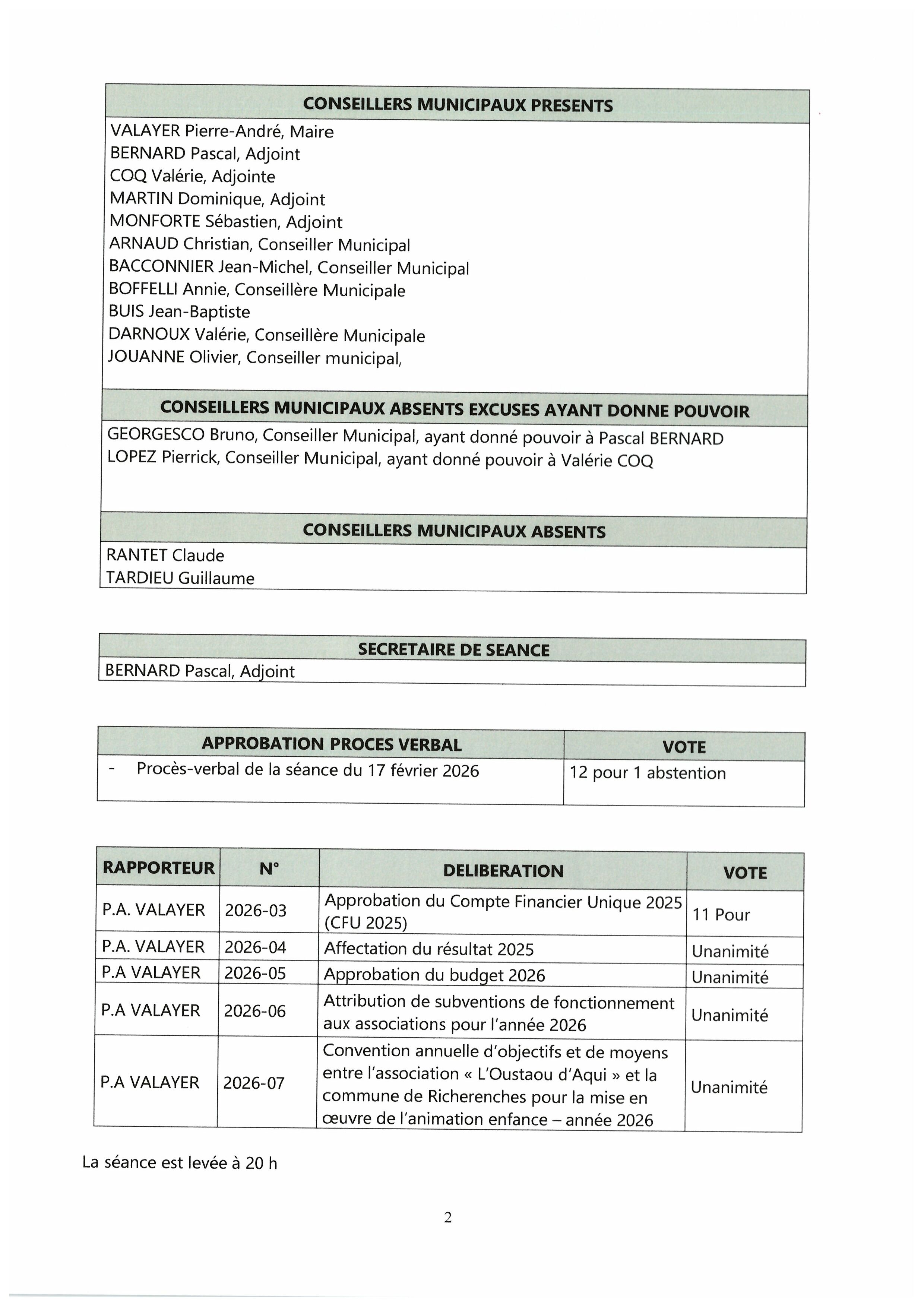 Vous êtes ici : Accueil > Conseil municipal > Relevés des délibérations